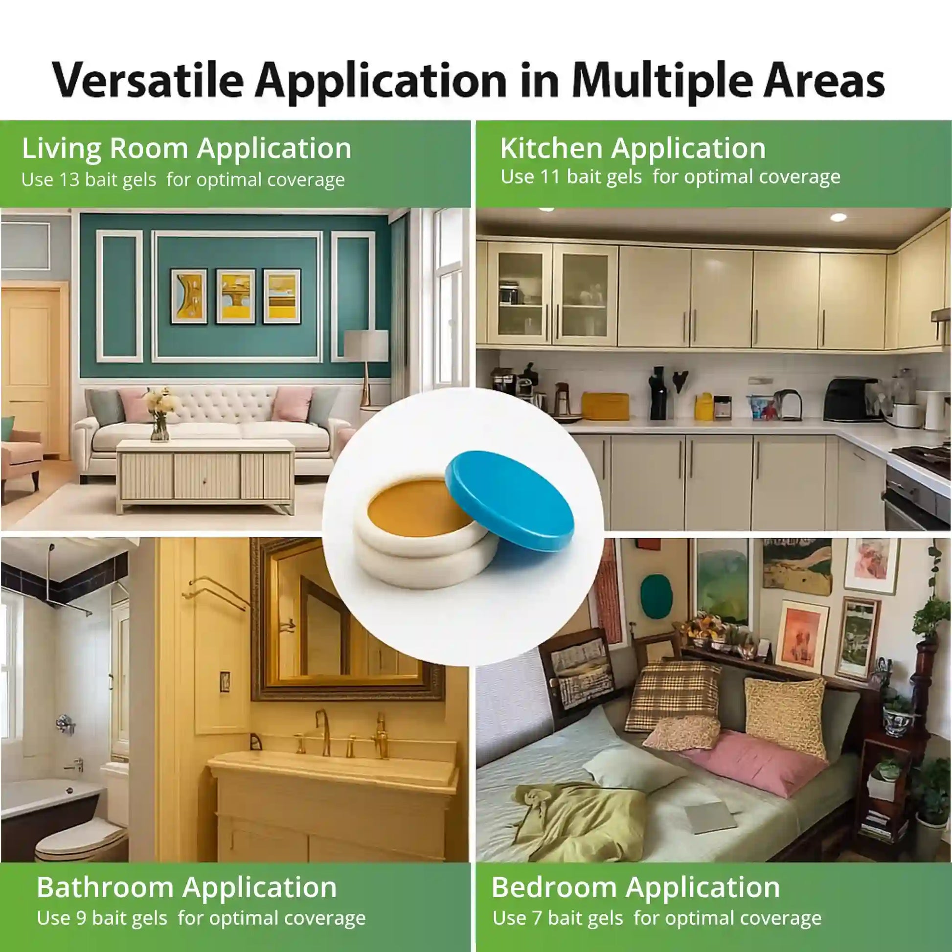 Apply the gel in areas where cockroaches usually hide — kitchen corners, under the sink, behind appliances, bathroom edges, and inside cabinets.