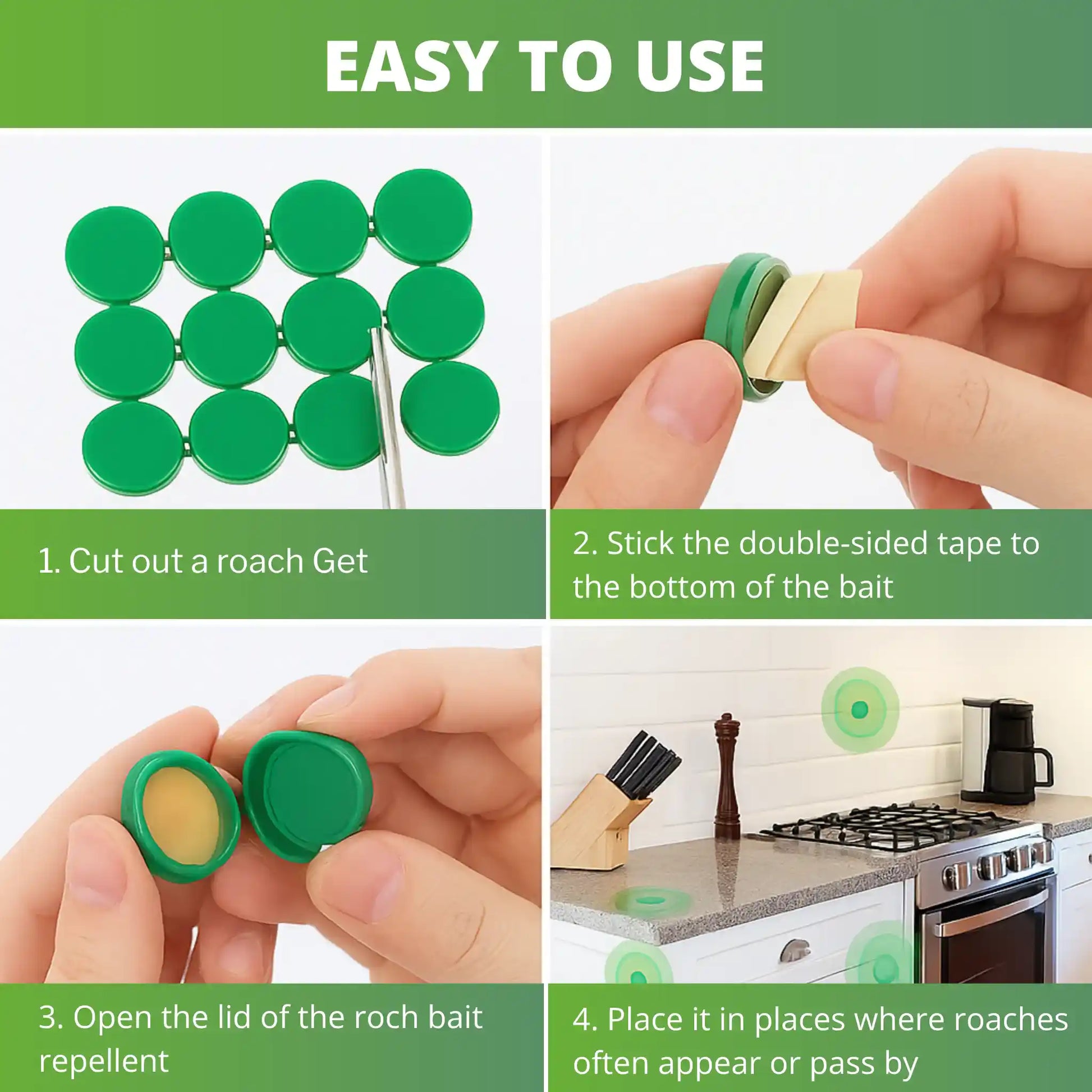 Open the lid and stick them on the place where cockroaches hide—like kitchen corners, behind the toilet, or under the sink.