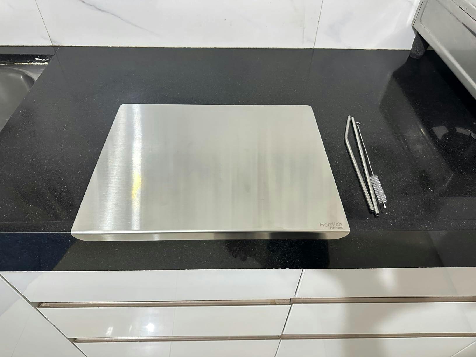 The quality is excellent, making it ideal for everyday use. The size is just right and fits perfectly in my kitchen. It’s sturdy, easy to clean, and hygienic compared to wooden or plastic boards. Highly recommend this product to anyone looking for a durable and practical chopping board!